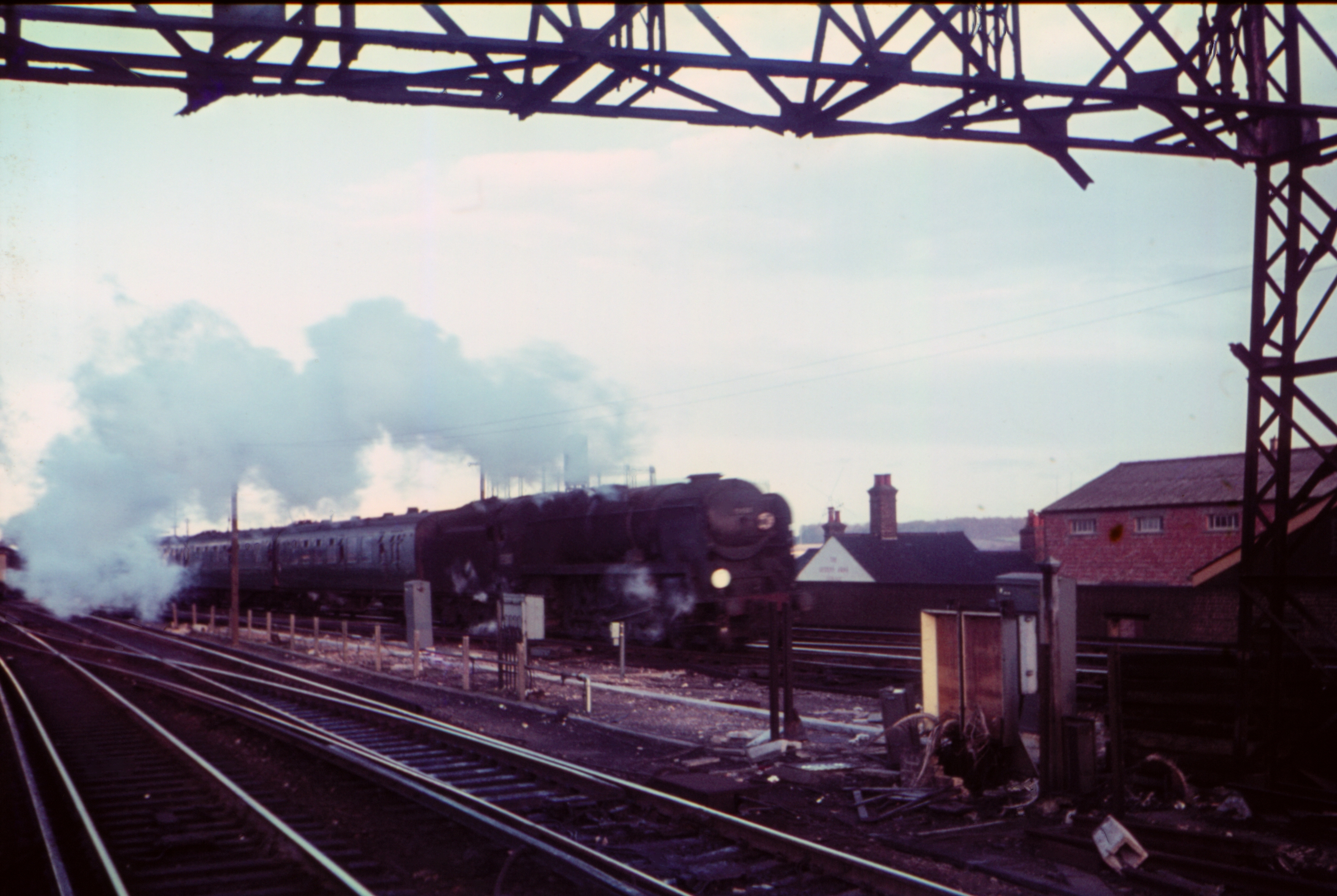 BR Standard 4-6-0 5MT 73169 1550 Weymouth to Waterloo passenger entering station 28th May 1966
